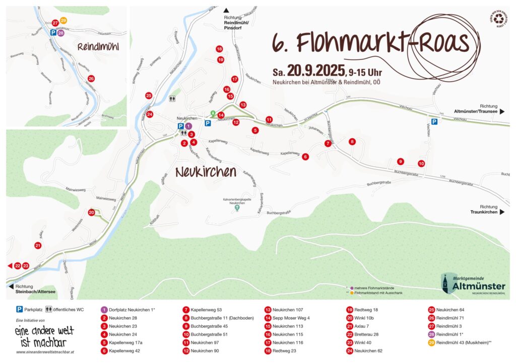 machen die Neukirchner*innen gemeinsam mit den Reindlmühler*innen vor und in ihren Garagen Flohmarkt.
